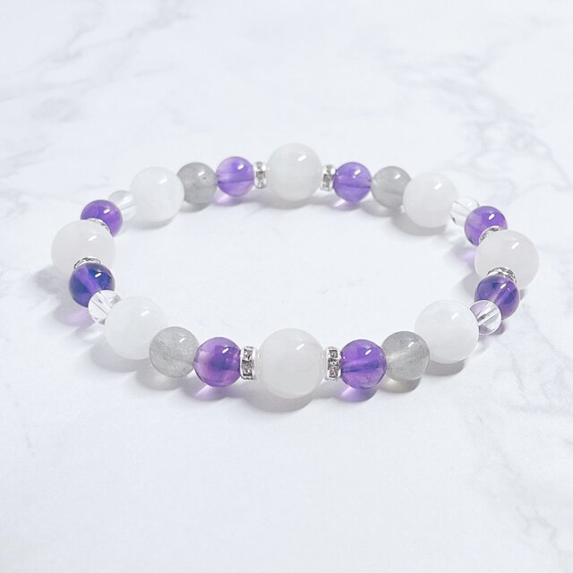 ✦天使の守護石 心安らぐ癒しのブレス◎エンジェルクォーツ ムーンストーン アメジスト パワーストーンブレス No779