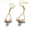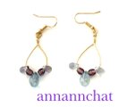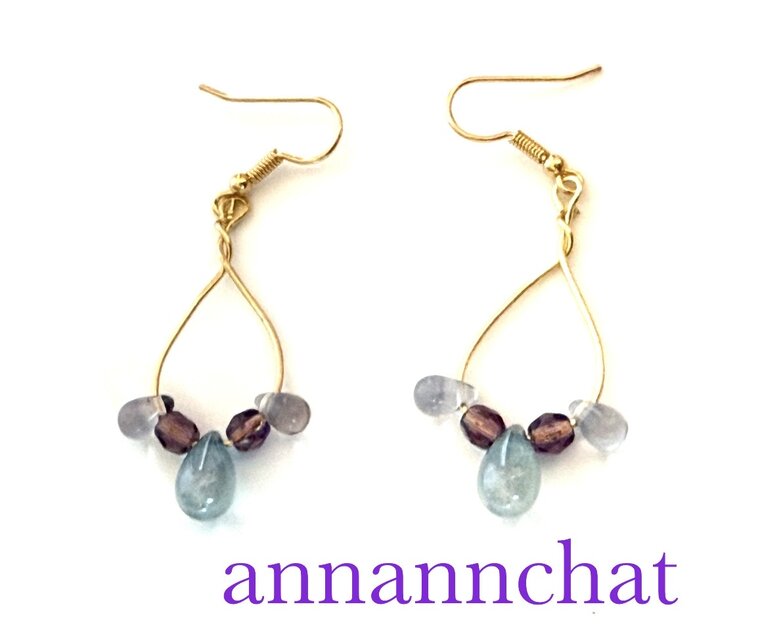 チェコガラスのビーズ くすみ系の3色で おしゃれなピアスを作りました。モチーフの長さは約35mmです。