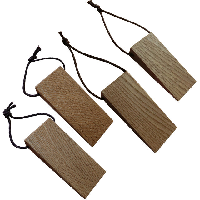 ドアストッパー ミニ 木地 ③ ドア止め 木製 4こセット くさび ウッドロック 楢無垢材 幅4奥行8.5高さ1.8(cm)