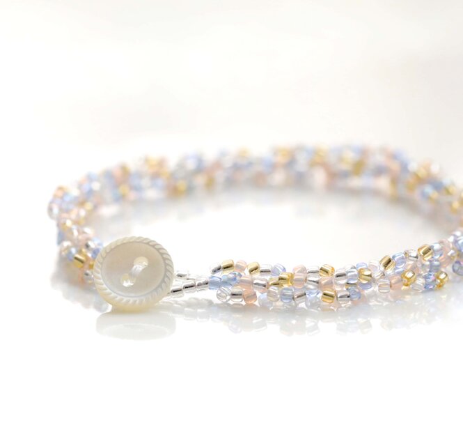 色とりどりの小さな国産ビーズを一粒一粒、色合わせをしながら編み上げたビーズブレスレットです。