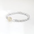 材料はガラスビーズと糸、留め具のシェルボタンのみで金属を使用しておりません。