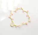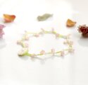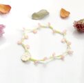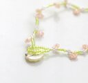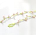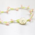 春の暖かさが感じられる淡いピンクにきらめくホワイト、柔らかな黄緑色のビーズを使用して製作しました。