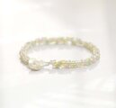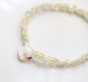 材料はガラスビーズと糸、留め具のシェルボタンのみで金属を使用しておりません。