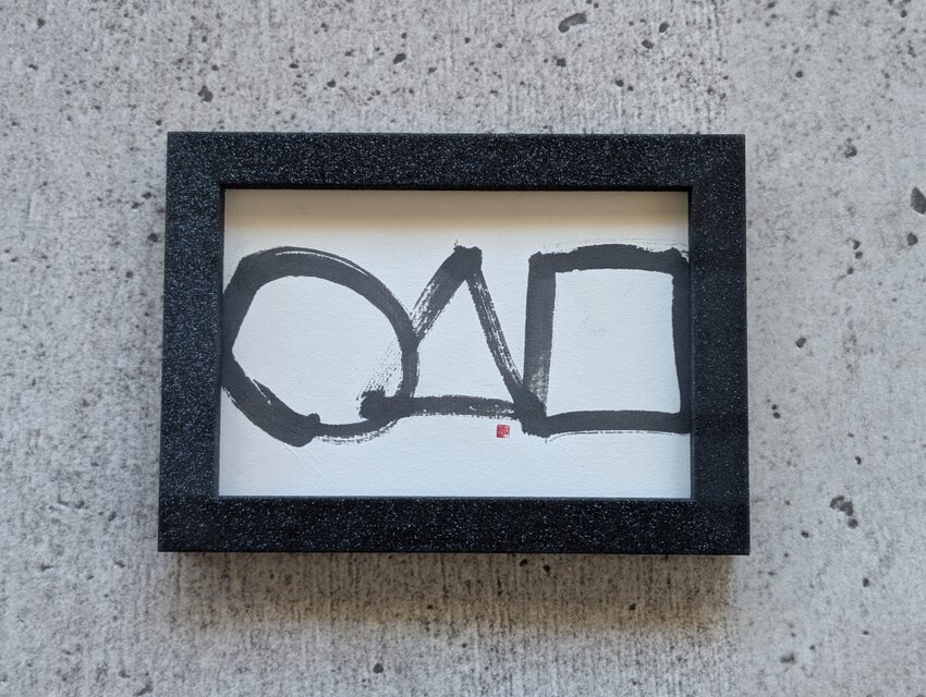 円ひとつを一筆で描く円相というものが一般的ですが、この三角と四角が追加されたものは悟りの過程とされています。