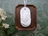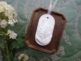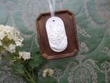 立体的なレリーフが実にリアルでビンテージな雰囲気がありつつ繊細な仕上がりの、アロマストーン製のオーナメント。