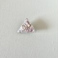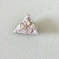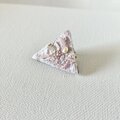 淡く優しいピンク色と糸や素材の輝きを合わせた軽い三角型の手刺繍ブローチです。