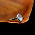 動かしながらごらんいただくと、まるで生き物のようにクルクルと表情を変える幻想的な輝きの美しいレインボームーンストーンです。