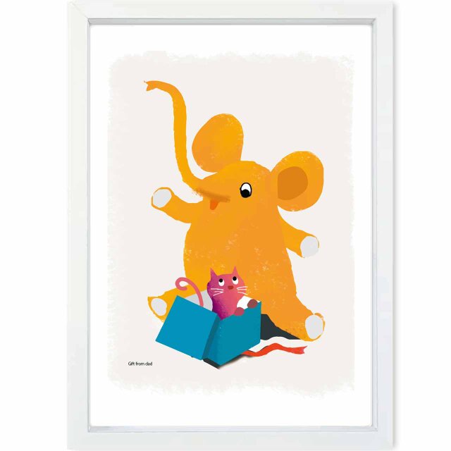 ゾウさん感激! パパからのプレゼントはネコだった なかよくしてねポスター。