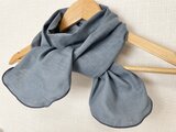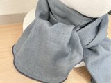 二重巻き綿100%ダブルガーゼブルーグレーリボンタイプネックウォーマー
