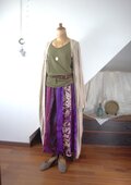着物リメイクの作品を初めて購入しました。留袖の柄や刺繍は重厚感があり綺麗ですがワンピースに仕立てると重たく感じるのではと心配していました。作品が届き手にした瞬間とても軽く驚きました。70代後半で着物を着ることが辛くなってしまった母も、これなら楽に着られると喜んでくれました。作品サイズは詳細に掲載していらしたので安心でしたが、総重量を掲載して頂くともっと購入者も増えるかとお節介ながらの感想です。