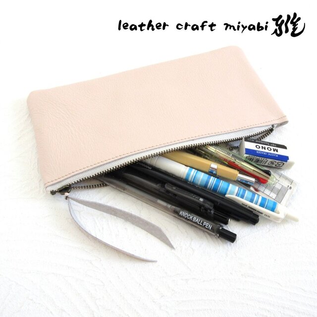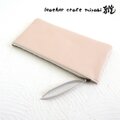 シンプルファスナーペンケース《ピッグスキン》ライトピンク・ナチュラルシュリンク・0129