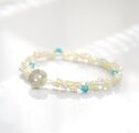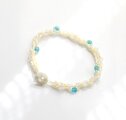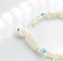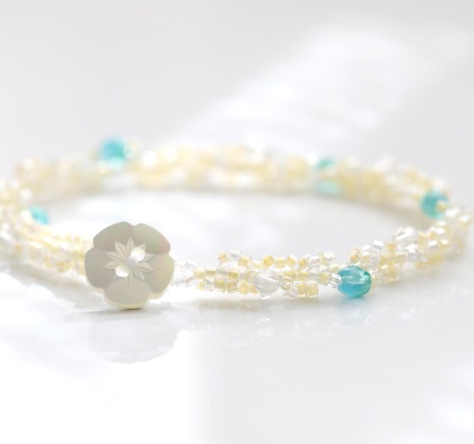材料はガラスビーズと糸、留め具のシェルボタンのみで金属を使用しておりません。