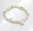 ところどころに配置したと透明とミックスグリーンのチェコビースがアクセントになっており、ささやかながらも華やかなアクセサリーです。
