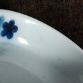 肉厚なボディ◆青い花 花文印判浅型鉢 皿 名陶 骨董/antiques 古道具 古民家 昭和初期