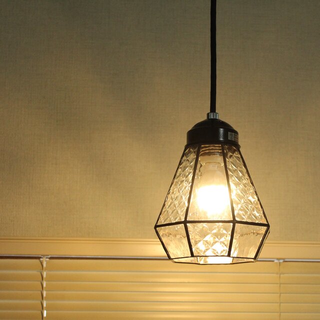 点灯すると模様ガラスの光の陰影が壁や天井に美しく広がり、お部屋にレトロ×モダンな雰囲気をプラスできます。キッチンカウンターの上などに複数個並べて設置されるのも、デザインがより活きておすすめです