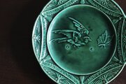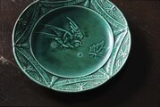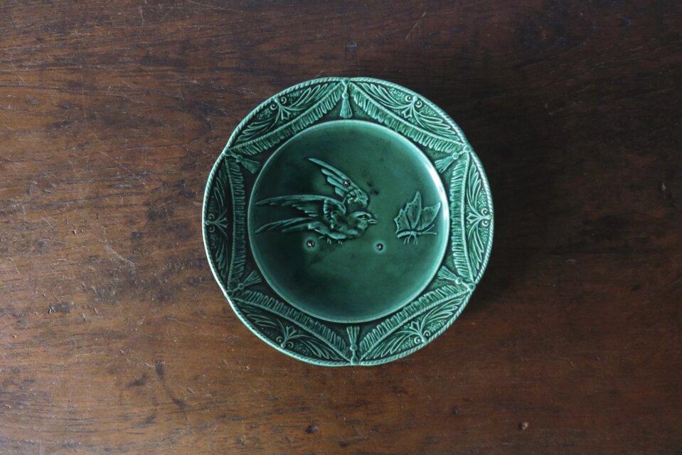 窯不明 バルボティーヌ 鳥と蝶 平皿 φ21.2cm フランス アンティーク ビンテージ 0502212