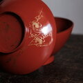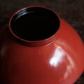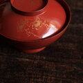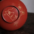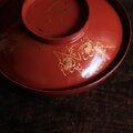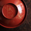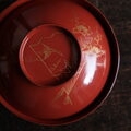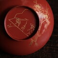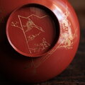 朱色寄りの赤に沈金技法での美しい絵付けです。