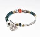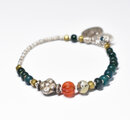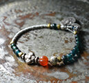 oldヒマーチャルシルバー&oldインドシルバー、蜜柑カーネリアン、銀化ビーズ、ブルーグリーンビーズのブレス