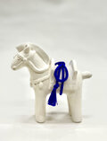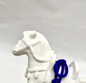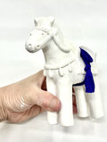 古代のはにわを思わせるデザインです。素朴ながら存在感ある仕上がりになっています。釉薬を使用していない「焼き〆」となっています。しかも珍しい「白い埴輪馬」になっております。