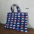 とてもかわいらしいレトロカーの入園バッグセットができあがりました。