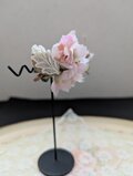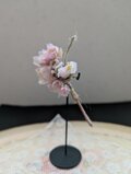 カジュアルにもフォーマルにも合わせやすい小ぶりの花飾りになっています。