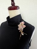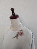 キナリ色のレースの葉っぱがアクセントになった桜ブローチです。