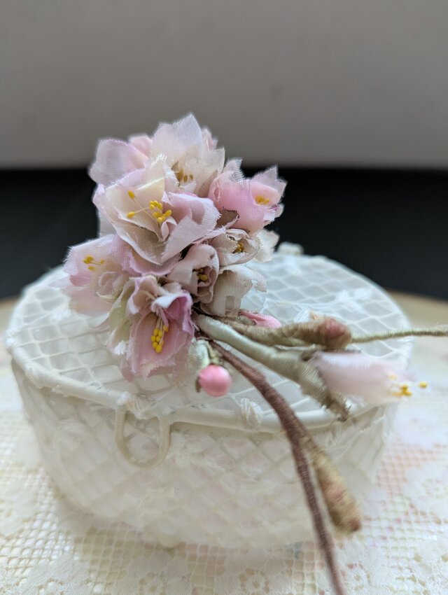 さまざまな布地の花びらで咲かせた八重桜