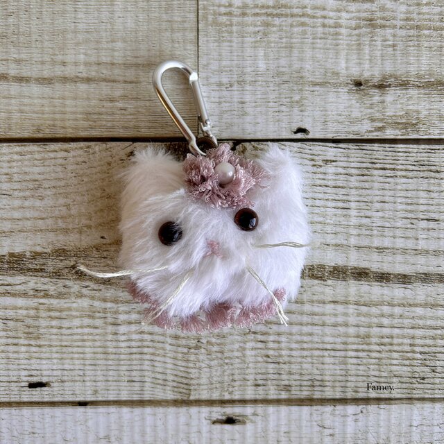 検索ワード→バッグチャーム、キーホルダー、猫、白猫、くすみピンク、花、大人かわいい、大人可愛い、かわいい、プレゼント、ハンドメイド、ギフト、クリスマス、誕生日、手仕事、パーティー、イベント、ディスプレイ、