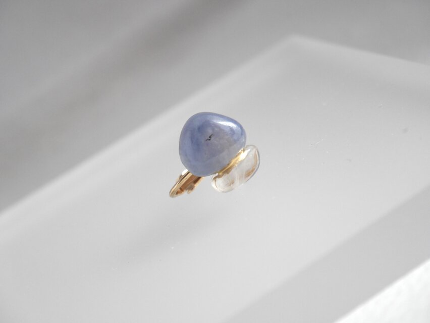 やわらかな光を含んだ淡いミルキーブルーが印象的なサファイアに透明感のあるルチルクォーツが合わさり、