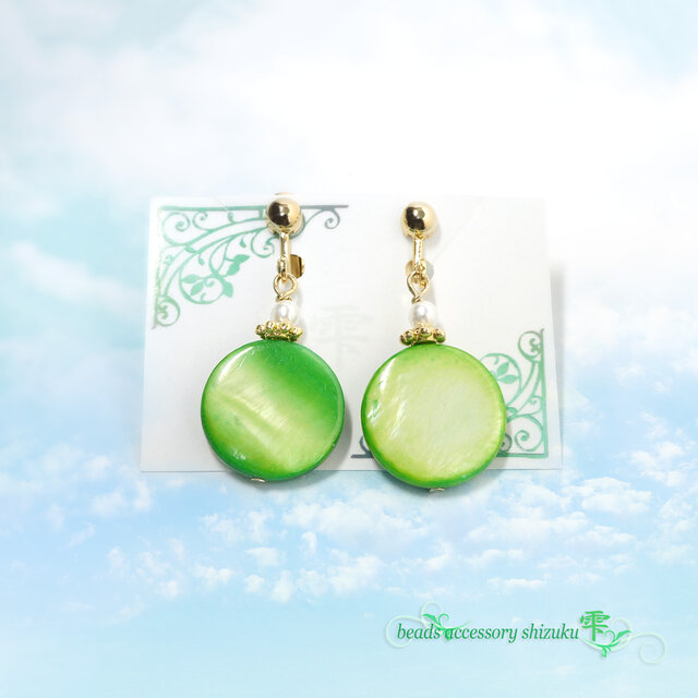 艶やかなグリーンシェルが耳元でやさしく揺れるイヤリングです。