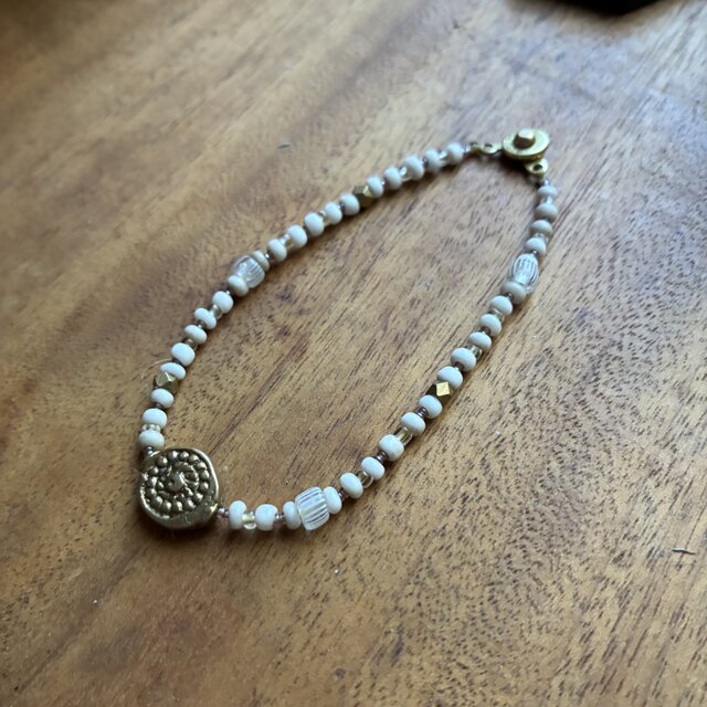 *古のブレス。@インドの真鍮モチーフビーズ+ジャワのシードビーズ+ベネチアの古いシードビーズ+デッドストックビーズなど