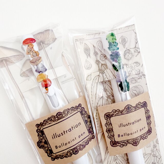 【受注生産】きのこ 多肉植物 ボールペン イラスト