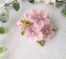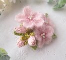 おぼろ月の夜。柔らかな光を放つ春の月と、見頃を迎えた桜が重なり、優美な景色を生み出します。幻想的で柔らかな雰囲気のお花やつぼみ、夜風に舞う小さな花びら…その美しく儚げな姿をブローチで表現しました。