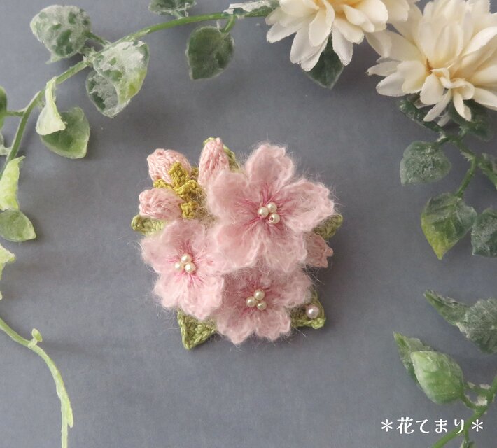 桜のお花はモヘヤの中でも最もやわらかなスーパーキッドモヘヤを使用した贅沢な糸でお仕立てしております。ソフトな肌触りと軽やかな風合いが魅力の糸です。