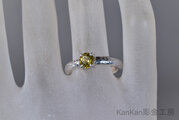 黄緑色の輝きを持つ、カットの整ったマリガーネットを用いたリングです。