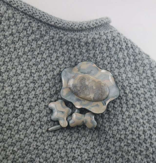 とっても大きなブローチが到着しました。 大きさにびっくりするとともに、毛糸と七宝焼きの異色の組み合わせのインパクトにもびっくりです。 この冬、大活躍しそうです。 ありがとうございました。