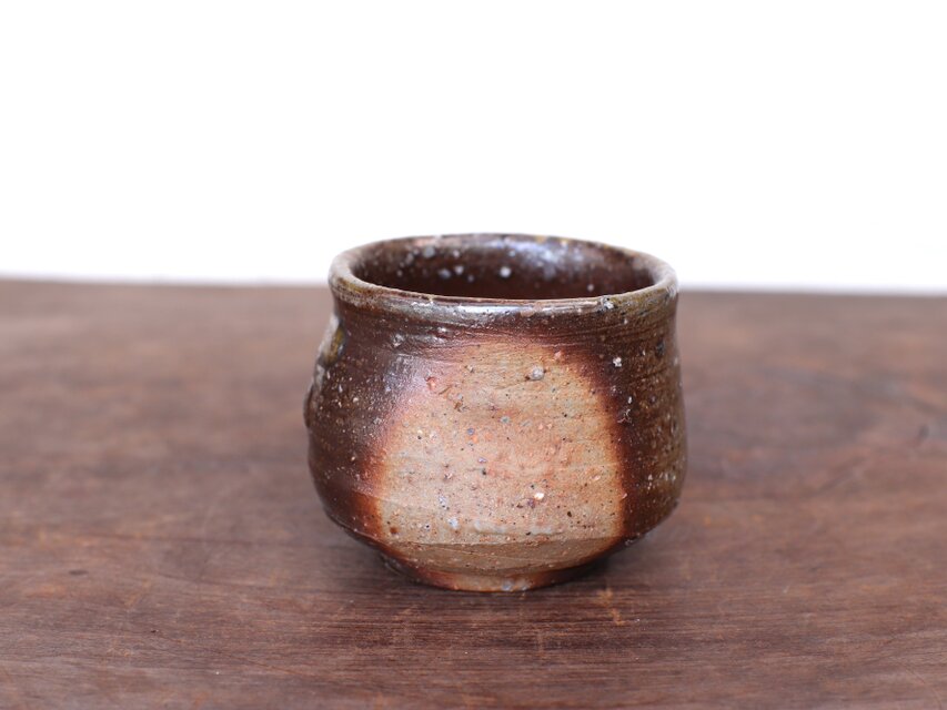 手にしっくりとなじみ、土味がよく現われているぐい呑み。土を焼いただけの素朴な佇まいは日本酒とよく合います。