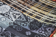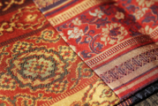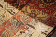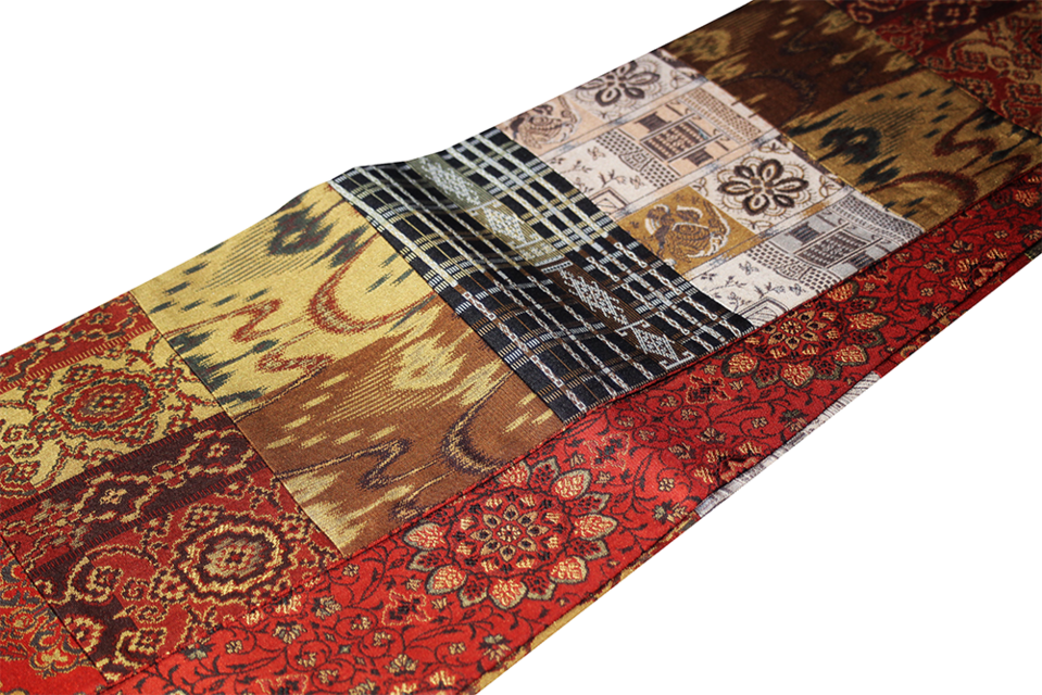 他社の織物ですが、生地をキリバミで縫い合わせて半幅帯に仕上げました。