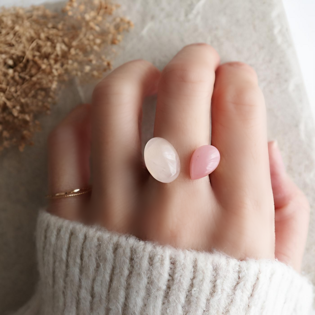 #天然石リング#フォークリング#ローズクォーツ#グァバクォーツ#ピンクアクセサリー#大人可愛い#桜カラー#春アクセサリー#天然石ジュエリー#誕生石#4月誕生石#カボション#淡色コーデ#ナチュラルアクセサリー#上品アクセサリー#一点もの#自分へのご褒美#大人ピンク