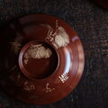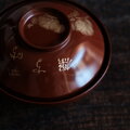 松と漢字◆赤茶色な色味。古輪島塗 漆芸沈金蓋付碗 漆器 骨董・antiques 古民家 大正〜昭和初期
