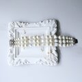 立体的に重なるパールのボリューム感と、繊細な装飾金具が調和し、エレガントな印象を与えます。