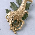 mother & calf giraffes safari brass ヴィンテージブローチ