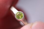 微細なレベルではありますが、よく見るとちゃんとインクルージョンがあって、わずかに曇りもある。要するにちゃんと石を感じられるペリドットです。