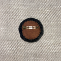ビーズと刺繍、ペイントで温かみのある表情に仕上げた丸型のブローチ。