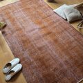 115×212 オレンジピンクブラウン オーバーダイ トルコヴィンテージラグ