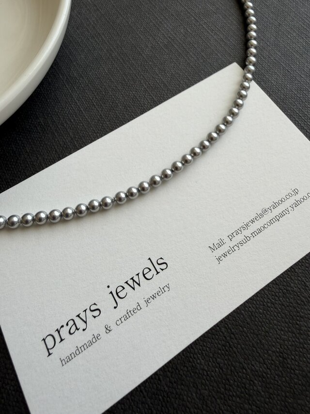 Sv 小粒チョーカータイプ パール一連ショートネックレス 3mm 39cm グレー高級日本製貝ミガキパール