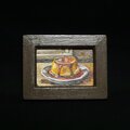 飾れるスイーツ【プリン】手のひらサイズのミニ油絵 原画 / インテリア モダンアート