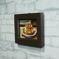 本作品の特筆すべきポイントは、プリン本体の黄金色が持つ温かみです。その明るさは周囲の光を反射し、作品全体に生命力を与えています。背景や皿の力強い筆致が、主役であるプリンをドラマチックに引き立て、見るたびに新たな発見と喜びを感じさせてくれます。