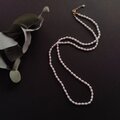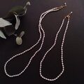 短すぎず長過ぎない、程よく縦のラインを作ってくれる56cm(2cmほどのアジャスター付き)に仕上げました。お手持ちの短いチェーンネックレスと重ねたりセーターやシャツの上からも着けられる程よい長さで、普段使いとしても使えるパールのネックレスです。