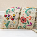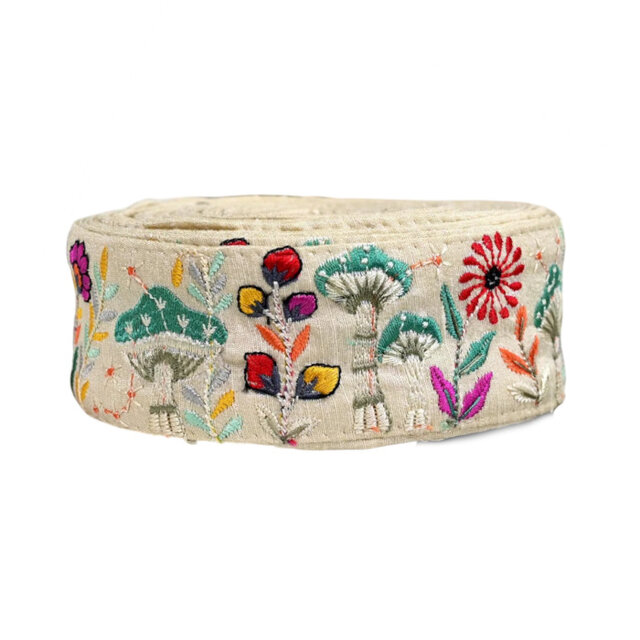 インド刺繍リボン50cm切り売り キノコの森B アイボリー 5cm幅 花 マッシュルーム ベニテングタケ R-0846